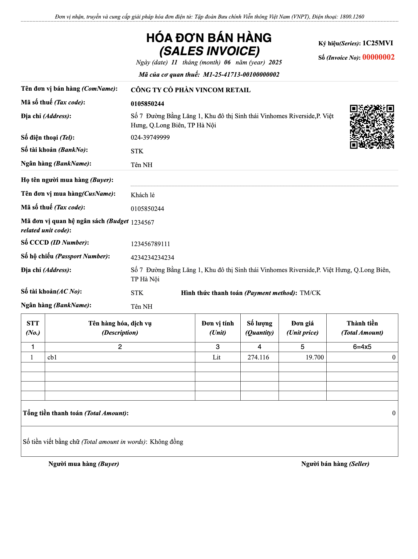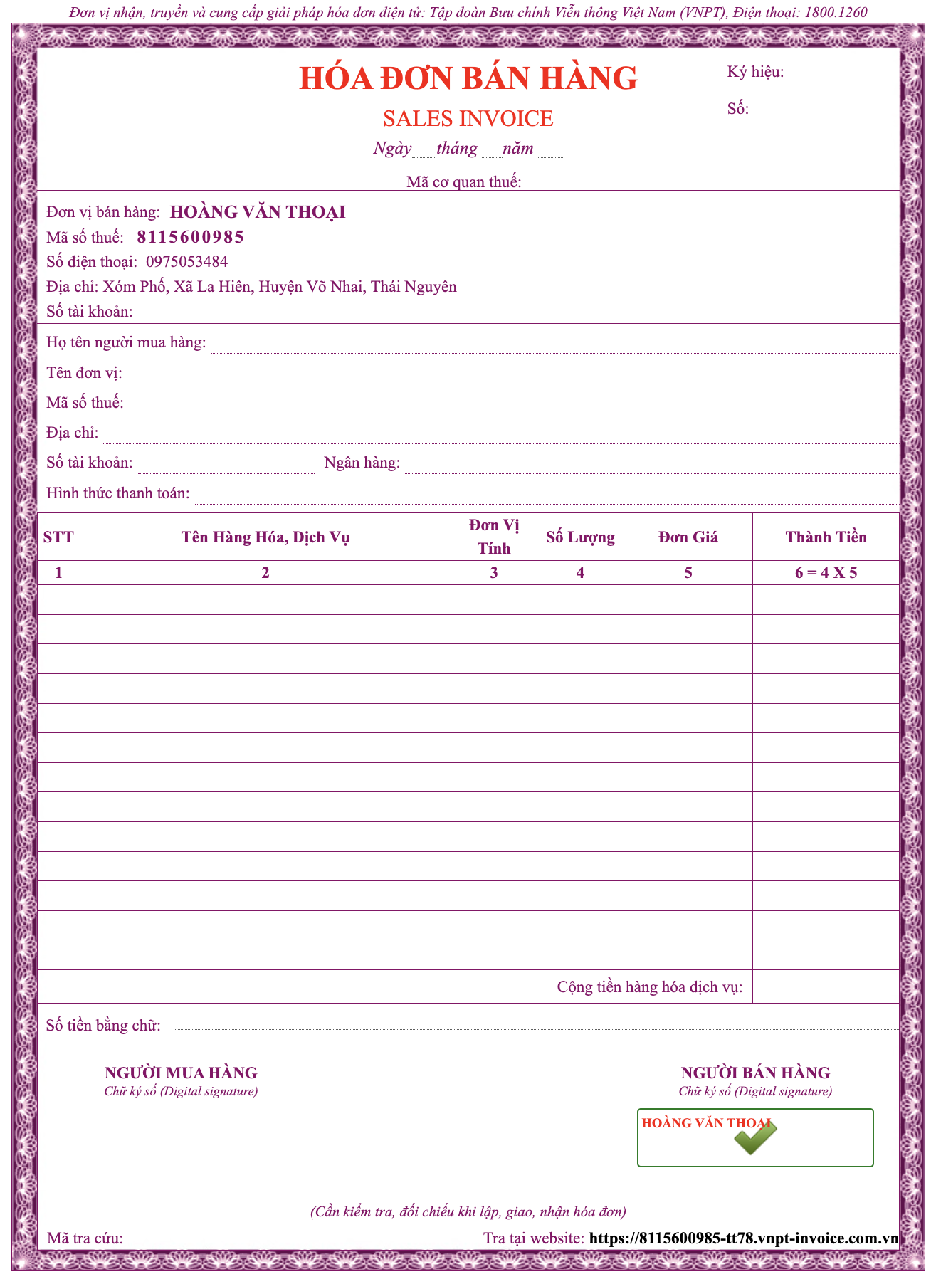 - Tên, địa chỉ, mã số thuế người bán.